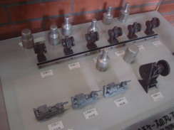 旧・三洋電機製作所・北條製造所は煉瓦造で、内部は鉄骨で補強されていたということです。当時は工場の入口近くに素材倉庫があって、プレス材の裁断が行われていました。当時は素材の入手難により、真鍮帯板も所定寸法に切断しなければならず工程が増え、素材の歩留まりも低下していました。所定の寸法に裁断された素材は次の部品工場に送られました。絞り作業を円滑にするために石けん水に浸された素材は部品工場内1列に並んだプレス機械で、プレスされていきました。プレス工程では先の曲がった特殊ペンチを使用して、プレス加工の敏速性や安全性の向上をはかっていました。プレスの縁取り等にも特殊なチャックが使われていたということです。ランプの反射板等も銀メッキが施され、メッキの下工程では焼戻し、表面仕上(ローレット)、バフ磨きが行われていました。各工程で加工された部品は運搬箱に入れられてラインからラインへ運ばれていきました。