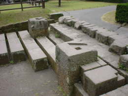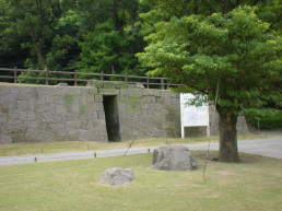 反射炉に隣接して鋳台(いだい)のあった場所があります。地下の下には鋳台の遺構が埋もれています。鋳台に大砲の鋳型が置かれ、出湯口から溶け出た銑鉄を鋳型に導き、大砲を鋳造しました。そのあと鋳型から大砲を取り出し、近くにあった鑚開台(さんかいだい)で水車動力を用いて砲身の中ぐりを行いました。