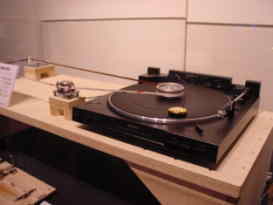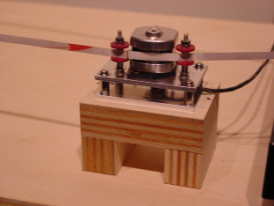 ヘッド(ワイヤーレコーダーのものを参考に自作) 輪状にしたテープを蓄音機のターンテーブルで駆動