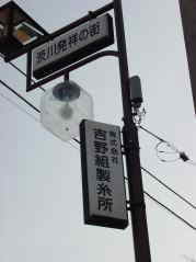 「株式会社 吉野組製絲所」と「渋川発祥の街」の看板が残る・・・
