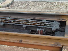 ラックレール(歯軌条)に噛み合う機関車のピニオン(歯動輪)