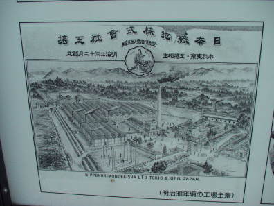 日本織物株式会社は、1887(明治20)年12月に設立(資本金50万円・当時)され、1889(明治22)年6月に一部、1890(明治23)年10月に全面操業しました。(本社は東京にあり、桐生に工場がありました。)