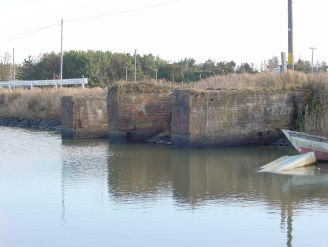 新鳴瀬川の下流(北上運河との合流付近)に残る橋台