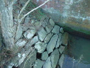 新鳴瀬川の上流付近(鳴瀬川との分岐点)に残る橋台