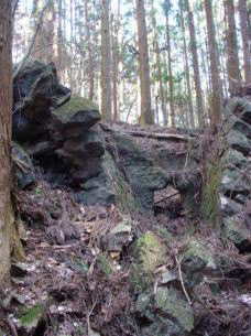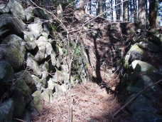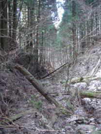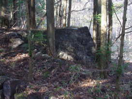 谷の南側に残る遺構 やや崩壊が進んでいます。 |
