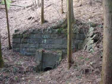 | 谷の北側に残る遺構 橋台のようにほぼ完全な形で残っています。 |