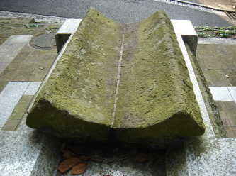 また、水受石は、山手の坂道など居留地時代の道路側溝(「ブラフ溝」)に使用されていた石材を再利用して転用したものです。
