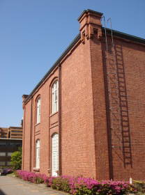 旧・金沢煙草製造所は1911(明治44)年起工、1913(大正2)年竣工の、回廊式煉瓦造2階建(全長280m)でした。のち日本専売公社の工場として使用されていましたが、1972(昭和47)年に工場は移転し、建物の取り壊しが1973(昭和48)年から始まりました。しかし、この建物の一部が金沢市に譲渡され、1979(昭和54)年に金沢市立図書館(現在の金沢市立玉川図書館)の別館(現在は近世史料館)として保存・活用されることになりました。