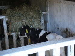 この牛舎には生後1歳くらいまでの子牛がいます。 牛舎の中は子牛の成長に合わせた多様な飼育室に分けられています。 2階部分は農場で収穫した干し草の倉庫になっています。 |