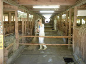 | 農場内最大の牛舎。 子牛用から種牛用まで多様な種類の飼育室に細分されています。 |
