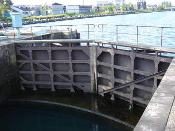 また、この閘門は海と川との生物の接点となっており、下流側にはコノシロ、アユ、ボラ、ミミズハゼなどが海から遡上してくる魚が、また上流側ではメダカ、フナ、オイカワなど川からの魚が生息しています。