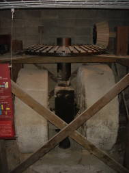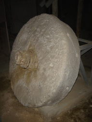 御影石製。創業開始間もない昭和2年頃に導入された粉砕機械。当時の工場にとっては画期的な最新機械で、「ひくす(方言でひきうすのこと)」と呼ばれていました。昭和25年頃まで炭酸石灰製造の主力として活躍した、かつての工場の主役ともいうべき機械です。