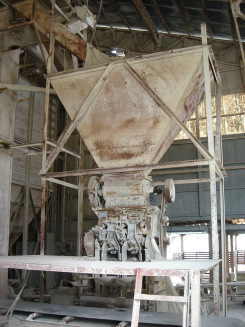エレベーターで上部のトロンメルに送られ、粒度を選別し、各粉砕機(ボールミル、フレットミル、ヤリヤ式粉砕機)に送る。