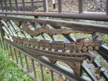 達曽部川橋梁付近の線路の柵には、銀河鉄道がデザインされています。