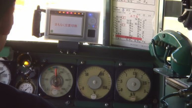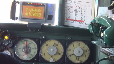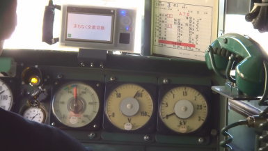 電車運転士が、架線からの給電を遮断したため、一番右側の電圧計が0Vになりました。