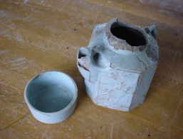 横川駅「おぎのや」で販売されていたと思われる駅弁のお茶容器(陶器製)を生徒が発見!