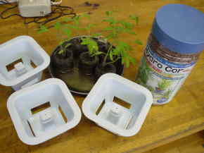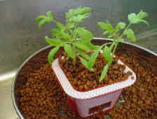 培養土ポットで大きくなった苗を養液栽培(水耕栽培)用のプランターへ移します。