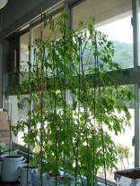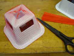 夏みかんが入っていた網を切ってプランターのポットにかぶせました。
