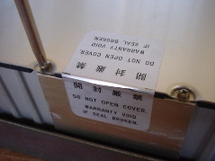 基板の絶縁に紙のシートが・・・ | いよいよ中を開けてみます! 「開封厳禁」のシールが(^^) |