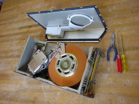 ハードディスクのしくみや構造の学習を行うときに、分解したデスクトップパソコン外付けハードディスクドライブの、
