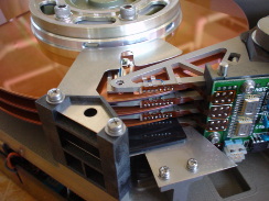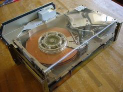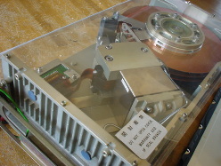 | ディスクやヘッドの様子が大きくて見やすい! ディスクの回転を支えているベアリング(軸受)は「NSK(日本精工)」製です。 |
