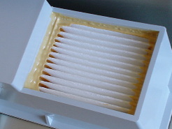 | エアー・フィルターが取り付けられていました。 密閉された装置内の空気をきれいにするためものですね。 「日本ミネラル・ファイバー」社製です。 |