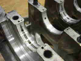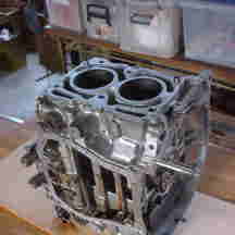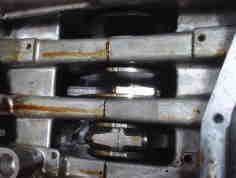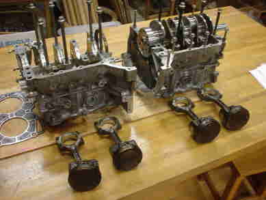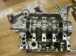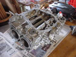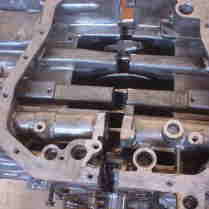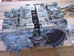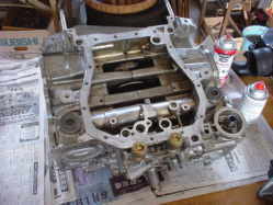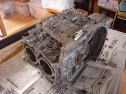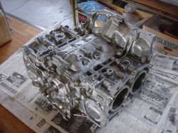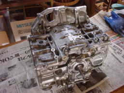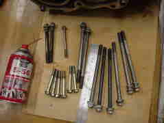 左右のエンジンブロックは、これだけの ボルトでつながっていました。 |