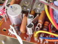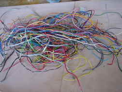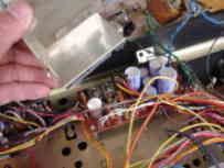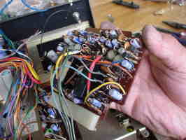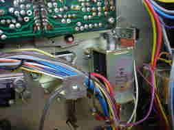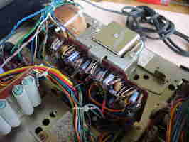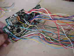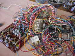 基板相互の接続はこんなにたくさんのコードで結ばれています。 現在の製品ではもう見ることはできない接続方法です。
