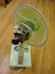 この扇風機はこのままの姿でモーター(電動機)の学習用に使っているものです。