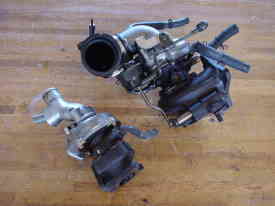 小さい方が排気量657(または658cc)のスズキ セルボ モードに搭載されているターボチャージャーで、大きな方が排気量1994ccのSUBARU BC5(スバル レガシィ RS系)のEJ20Gエンジンに搭載されているターボチャージャーです。どちらもIHI(石川島播磨重工業)製です。