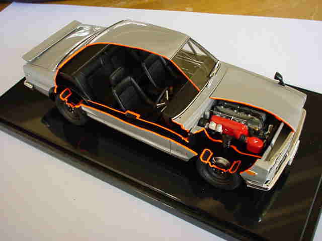 | カットモデルにして、こうして見ると、なかなか立派な教具ですね!!(スカイラインGTR) | ||