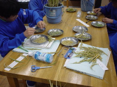 これから、稲を米にするんだ。みんなの稲は、どこまで進んだの?
