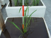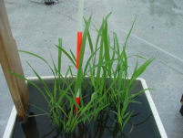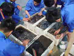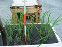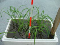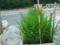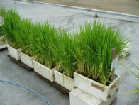 中学校の校舎屋上で、発泡スチロール箱を使って栽培しています。