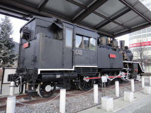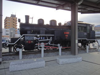 このC12形式タンク機関車は、昭和7年に誕生し、国内の産業・経済・文化の発展に大きく貢献しました。このC1267は、その67号機です。太平洋戦争中、現在の市内北山地籍にあった諏訪鉄山から軍需用に鉄鉱石が採掘されました。その輸送のため茅野駅まで専用鉄道が敷かれ、田園地帯を蒸気機関車が走りました。そこで活躍したのが、この機関車と同じC12型の機関車でした。市では、この機関車の廃車に際し、昭和48年、かつての歴史を伝える社会的教材として旧国鉄(現JR)から貸与を受けました。そして現在、機関車にふさわしい駅前の交通広場に配置し、この場所で市民の皆さんや遠来の方々に一時を憩っていただけるよう展示しています。