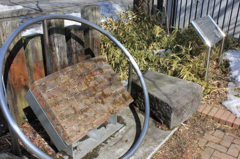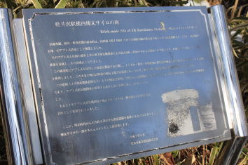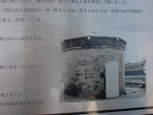 | 軽井沢駅構内煉瓦サイロの碑 Brick-made Silo of JR Karuizawa Station 明治40(1907)年 信越本線、横川・軽井沢間の碓氷峠は、国鉄線(現JR線)の内でも線路勾配が最も急であるため(最急勾配66.7‰)、我が国でも唯一のアプト式鉄道として開業しました。 そのアプト式も技術の進歩と共に強力電気機関車による粘着運転(動輪のみによる)が可能となり、昭和38年9月に70年余の使命を達成し、その後廃止となりました。 この碓氷峠にアプト式を採用した鉄道を敷設する際に、トンネル・橋梁・付属建物に相当量の煉瓦(例:めがね橋構築に200万個)を使用しました。この大量の煉瓦は既設の煉瓦工場では需要に賄いきれず、軽井沢町・塩沢に煉瓦工場を新設して賄いました。 この建物(JR財産標鉄倉庫五号)もその煉瓦を使用して作られた構築物の一部(厚さ60cm・高さ3m50cm・直径5mの円筒形)であり、アプト式蒸気機関車に使用する水を上部の水槽に蓄え、給水していました。 ここに、明治時代からの当時を偲ばせる鉄道遺構を後世に末永く伝えるべく、煉瓦サイロの一部をモニュメントとして保存致します。 平成7年6月 東日本旅客鉄道株式会社 |