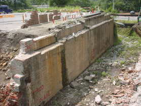 橋梁工事着工後、1891(明治24)年10月に、岐阜と愛知地方に強い地震が発生し、その被害が大規模であったことから、パウネルは各橋梁の設計見直し、煉瓦積の柱などには中間の所々に直立の石柱を挟み、また煉瓦を縦に用い、アーチを積むのにも所々に縦に煉瓦を用いて煉瓦相互を結合させるなどの補強工事を追加しています。