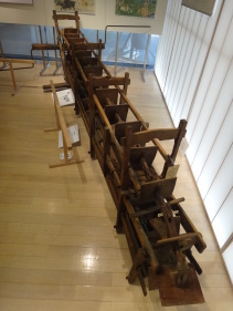 水田に水を汲み上げる揚水機で、揚水板が龍の骨に似ているので「龍骨車」といいます。実物を初めて見ました。