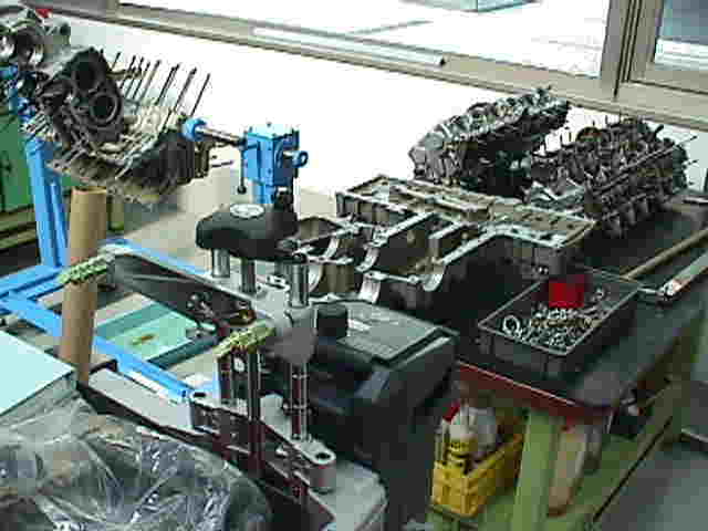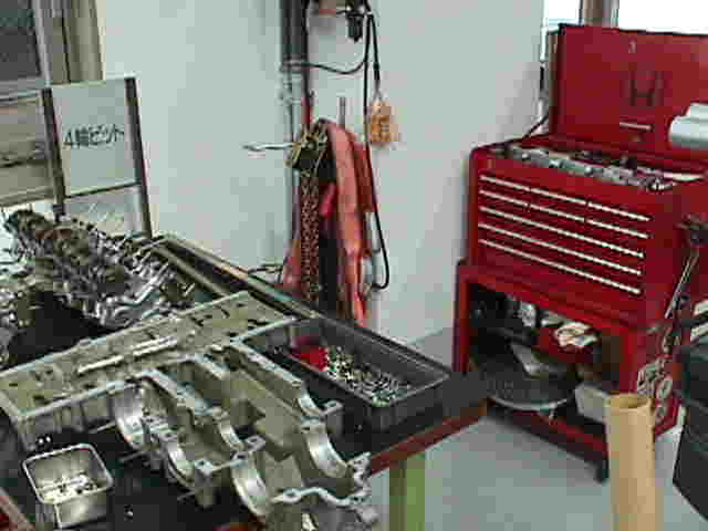| エンジンの組立 | 工具類もきれいに整理されています。 | ピストン・クランクシャフト |