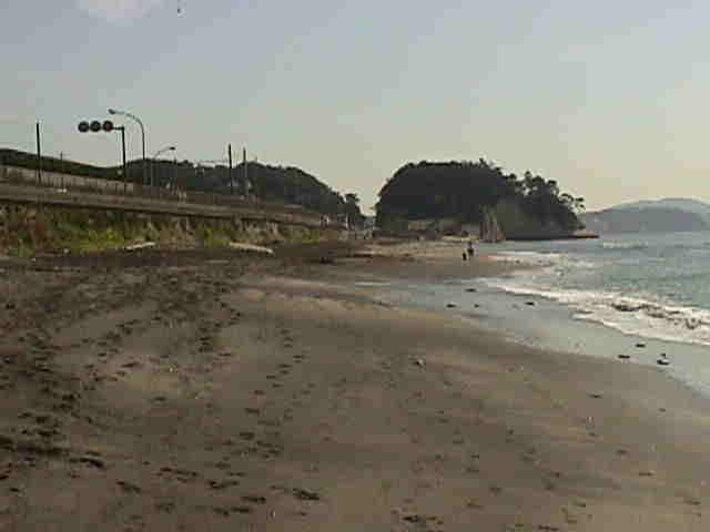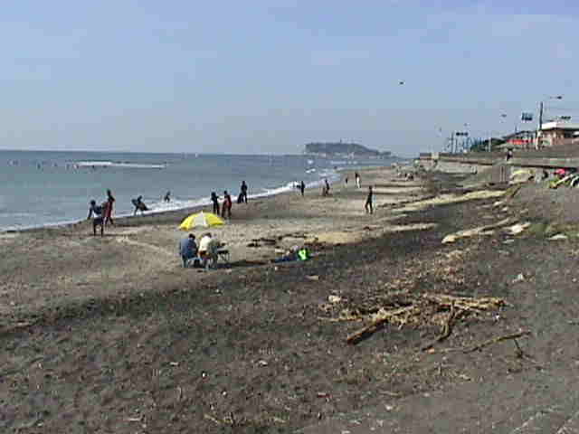 | 遠くに江ノ島が見えます! | 稲村ヶ崎方向です。砂浜が黒っぽい! |