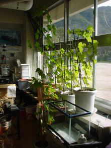 屋内で栽培しているものも葉の色がいちだんと変色してきています。