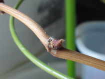 10個の鉢で栽培していますが、そのうちの1つで「花穂(かすい)」ができはじめました。今後、上手に「整穂(せいすい)」「摘房(てきぼう)」「摘粒(てきりゅう)」を行っていけば、メンデルのブドウをはじめて食べることができるかもしれません(^^)