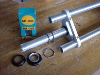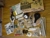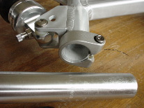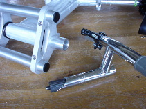 | フロントフォークを組み立てると自転車らしくなってきます。ドキドキ・・・ | シートポストとシートクランプ | |