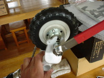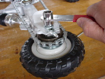 | タイヤは仮止め | スプロケットにチェーンを取り付けて後輪を固定 | |