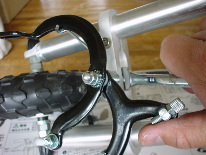 | ハンドルやシートポストにはきちんと限界マークが表示されています。 | ブレーキ・キャリパー | 標準タイプの組立終了! 機械の組立に慣れている方なら約1時間でOK |