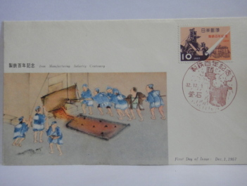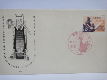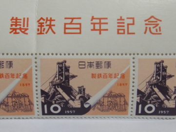 | 世界初の鋼製(steel foil)の切手で、アメリカ合衆国に発注して製作した切手です。 裏面はシールとなっていて、製造メーカーと材質・仕様が表示されています。「USS Steel Foil .001」 飯田賢一「鉄の語る日本の歴史 上」そしえて 1976年 で紹介されています。 |