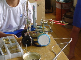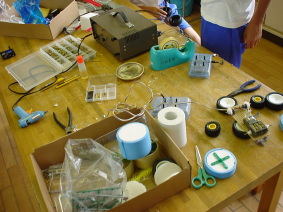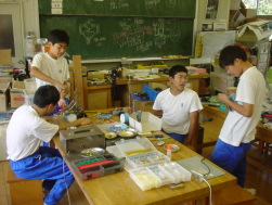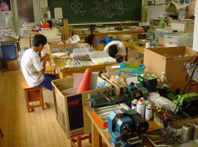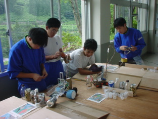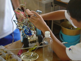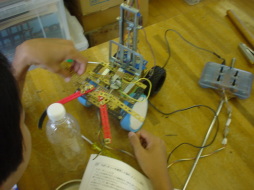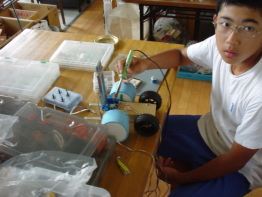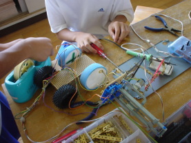 7月上旬までは、「群馬県中学生ロボットコンテスト2001」とロボットの開発が平行して行われました。ここまでの取り組みは「群馬県中学生ロボットコンテスト2001」のページをご覧下さい。