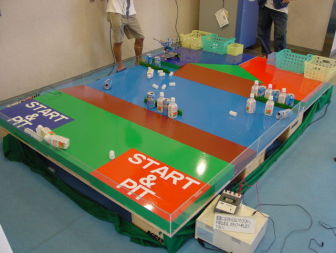 競技フィールドを設置!ロボットの基本的な動作をチェック中