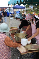 「棚田米おにぎり」「月見汁」をいただきました。できたて「おやき」もおいしかった!