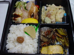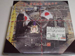 このD51・C57重連運転を記念して、高崎弁当が「SL重連運転記念弁当」を限定販売しました。イワナや山菜てんぷらを組み合わせたもので、高崎駅2番線ホームでは懐かしい駅弁の売り子による販売も行われました。売上金の一部は新潟中越地震被災地への義援金となります。