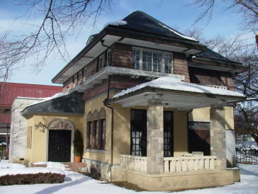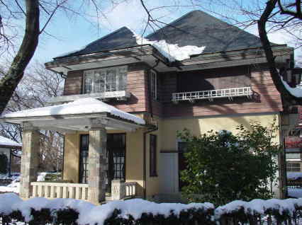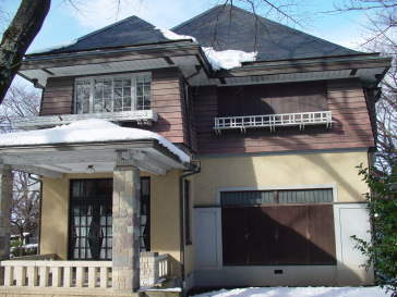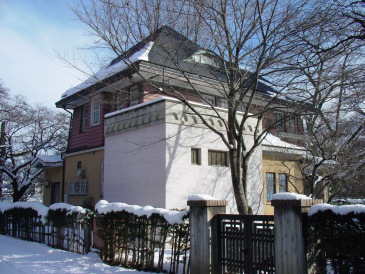 建物は、大正末期から昭和初期にかけてみられたドイツの郊外別荘風住宅で、外観全体を屋根・2階壁部・1階壁部とそれぞれ仕上げを異にする意匠の3層に分けています。俗に「牛の目窓」と言われる屋根窓を中央に配した急勾配の天然スレート葺屋根と、2階の下見板張りの外壁、1階の黄土色のドイツ壁仕上げに大正期特有の様式がよく表されています。
